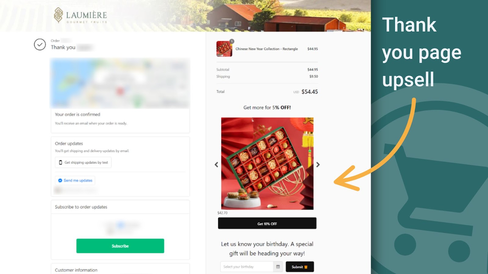 Takeaway: Use one-click post-purchase upsells to boost order value without risking cart abandonment.