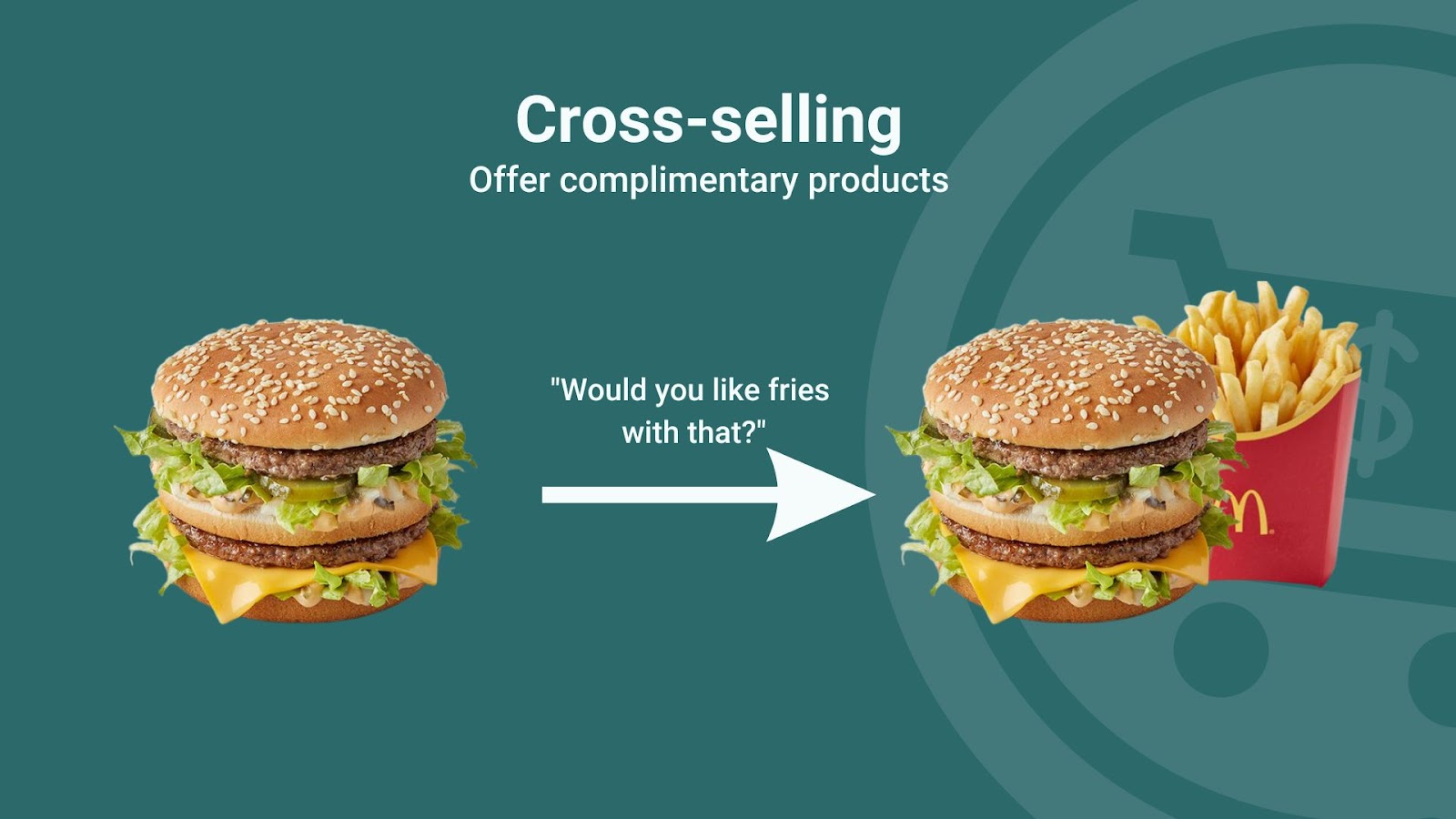 Cross-selling, on the other hand, means suggesting related or complementary products, like adding a cleaning kit when buying cookware.