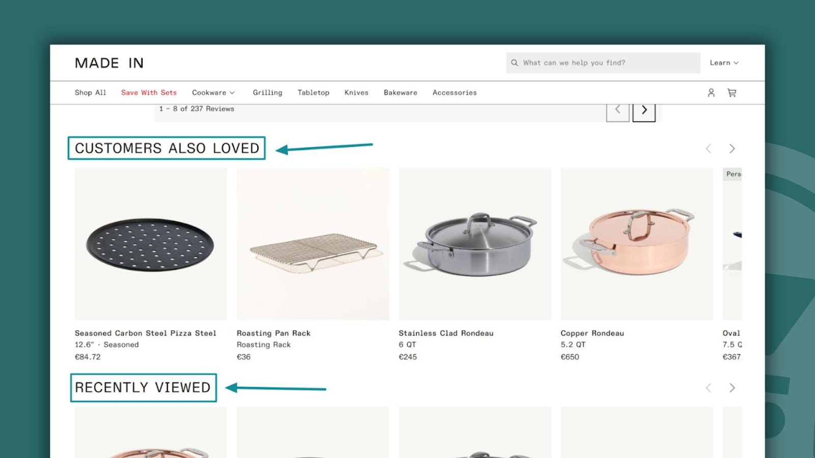 2. Made In’s “Customers Also Loved” + Recently Viewed