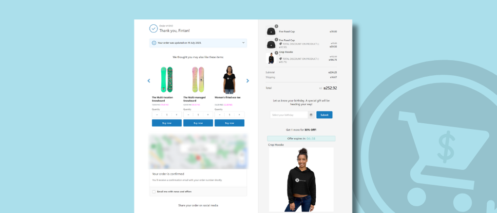 By using this opportunity to suggest relevant products that will complement their purchase or encourage repeat orders while they are still keen, you can maximize conversions and make the most of having their full attention.
