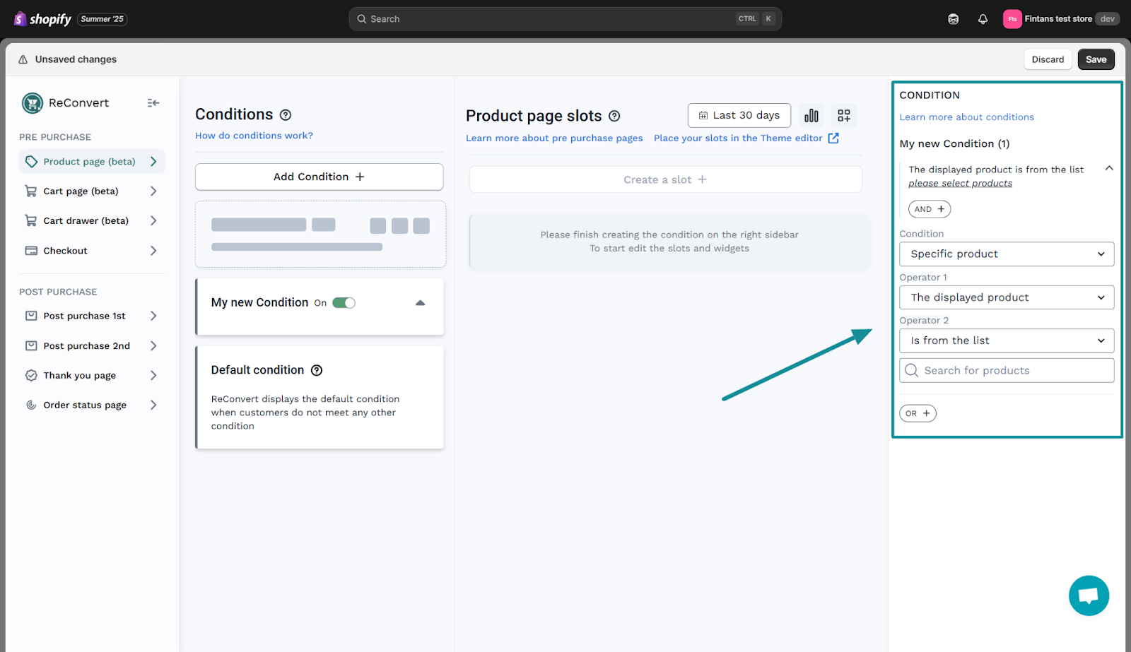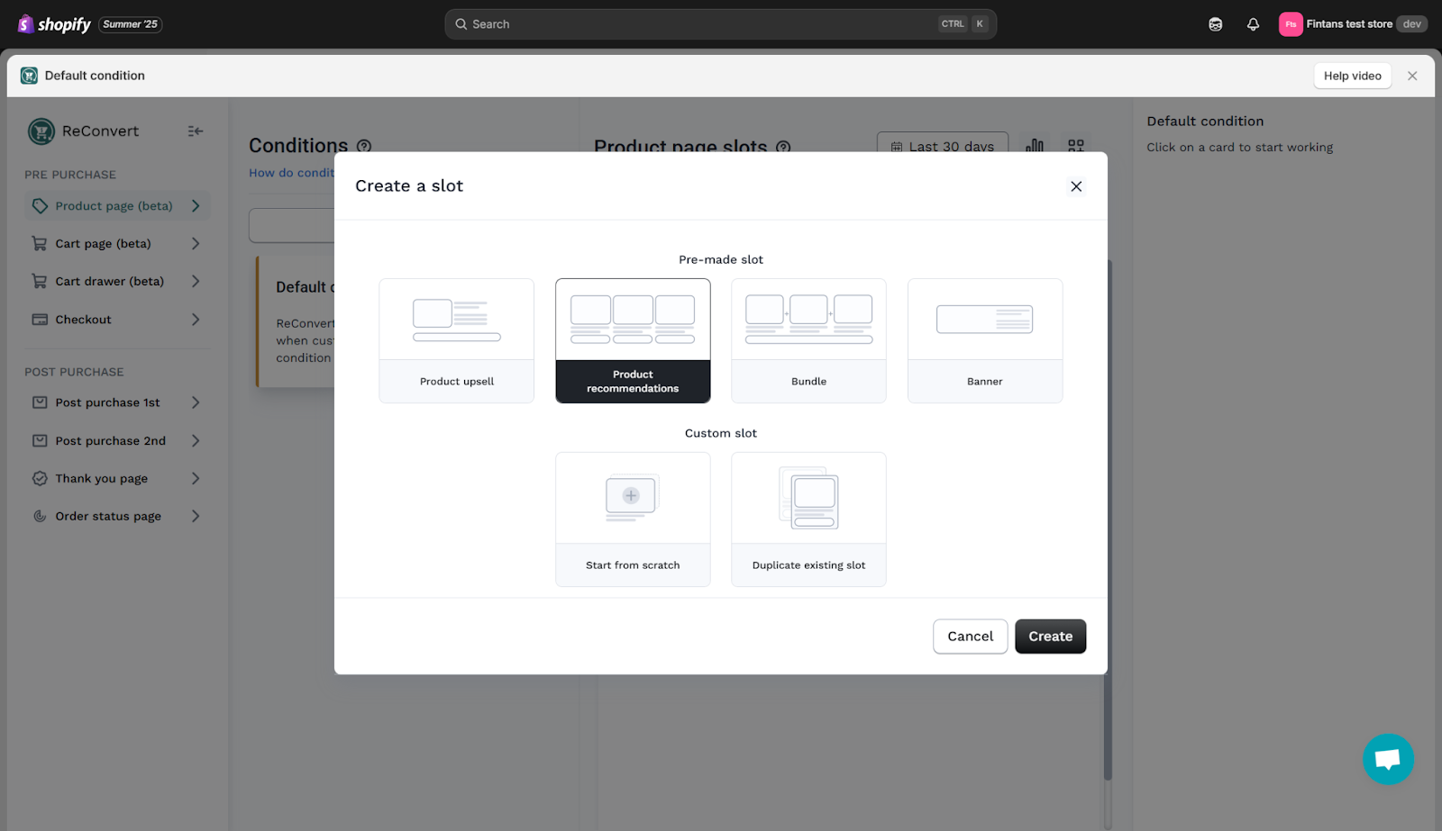 Let ReConvert suggest the right items based on the current product, Shopify tags, or manual selection.