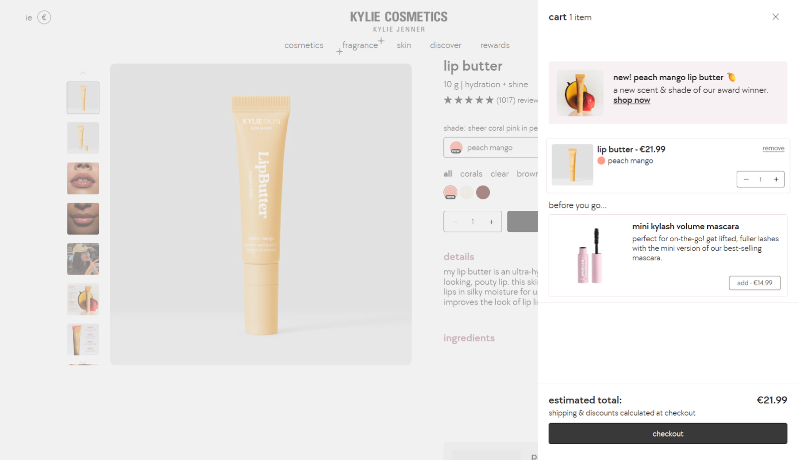 Example: Klylie Cosmetics upsells mascara with their lip butters - Accessories or essentials