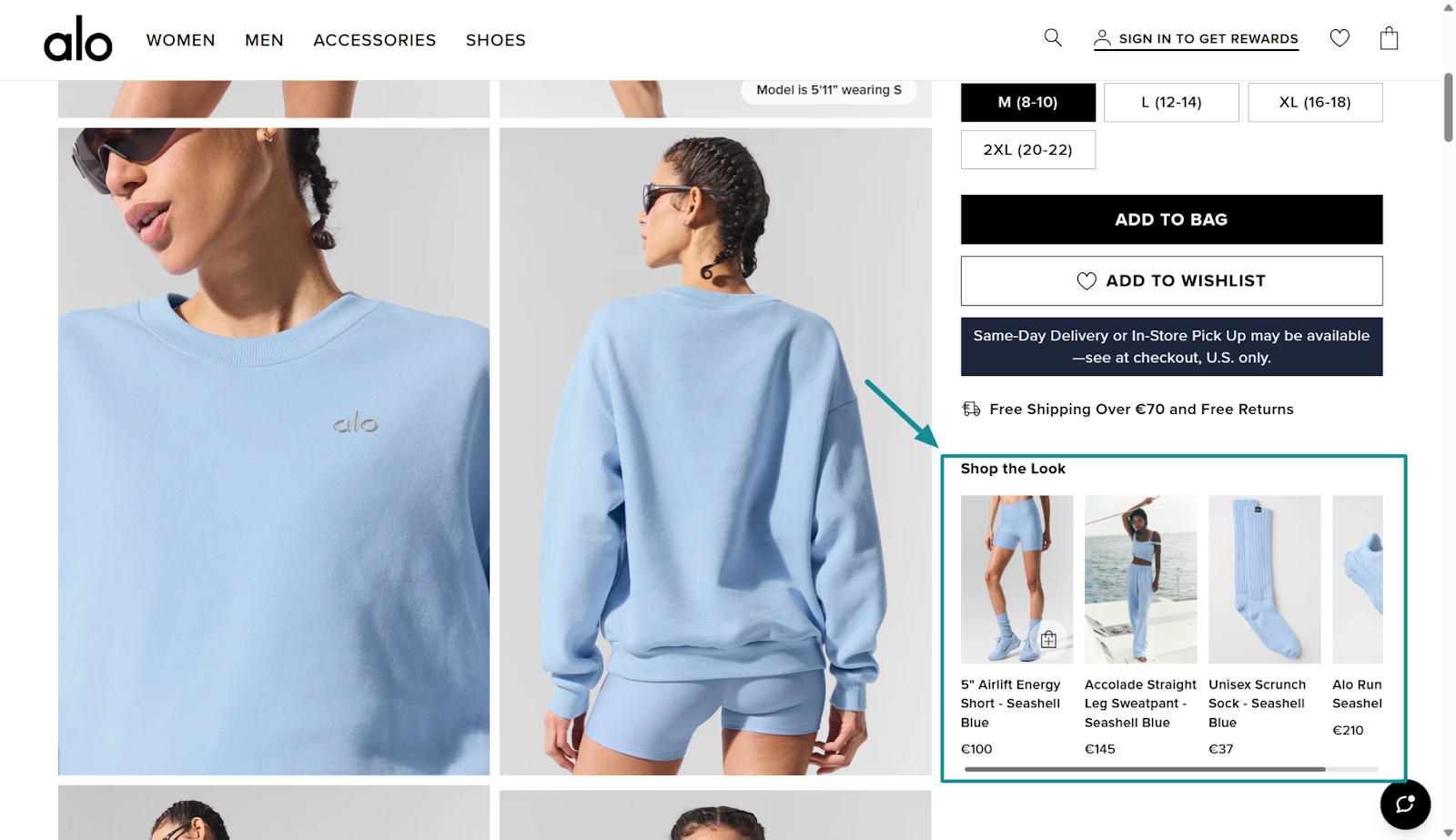 - Example: Selling workout clothing? Cross-sell the full outfit like alo does abover