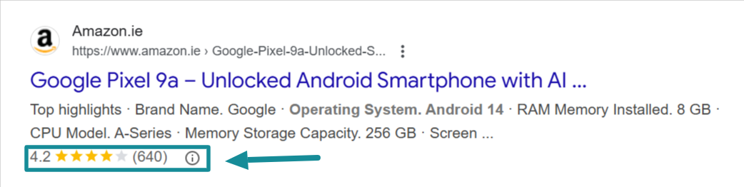 - Better visibility: Your results can show star ratings, prices, stock levels, FAQs, and more.