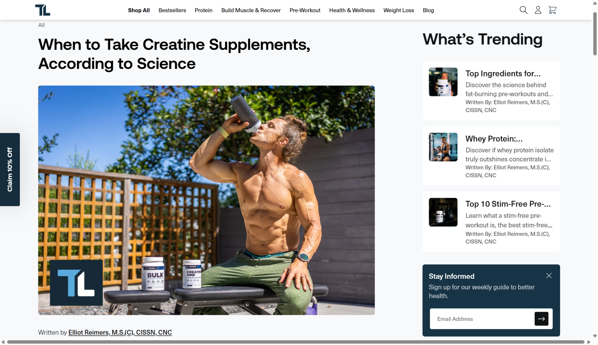 One standout example we came across is this optimal creatine intake guide. The first thing you notice is the author schema. It is written by Elliot Reimers, M.S.(C), CISSN, CNC – full credentials included. That matters because having a real, qualified author tied to the post builds instant credibility.