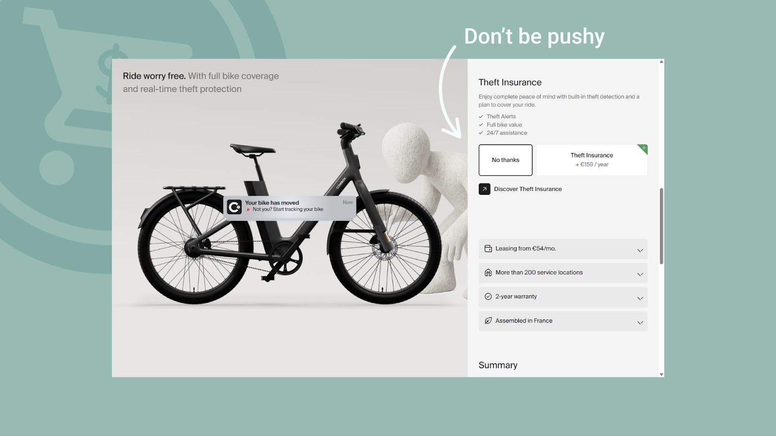 The goal is to make the upsell easy to accept, but just as easy to dismiss.