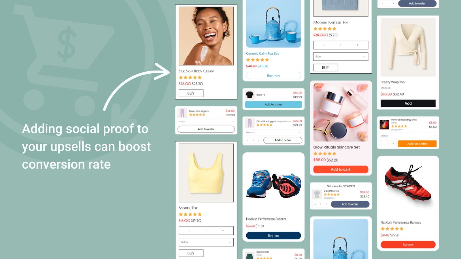This can take the form of customer reviews, star ratings, or a simple “Bestseller” tag next to the upsell.
