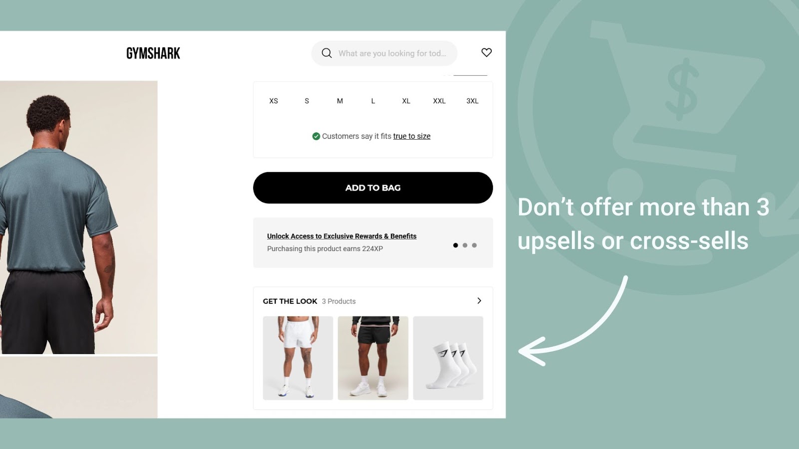 For example, Gymshark uses a ‘Get the look’ box on product pages - presenting the 3 other items of clothing in the product image.