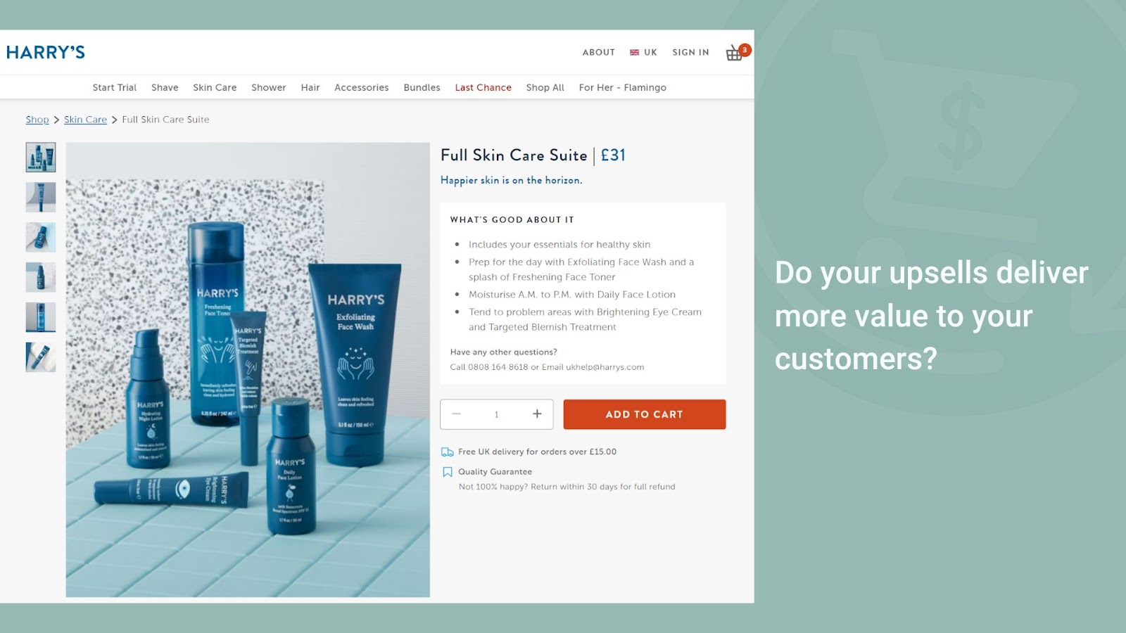 The key is to align the upsell with what you know about the shopper, so it feels like a thoughtful suggestion rather than a random pitch.