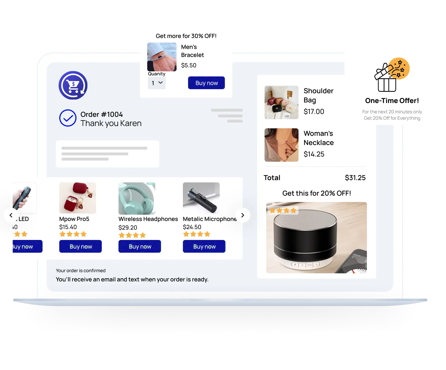 Transforma tu página de agradecimiento en un activo que genere ingresos con ventas adicionales, ventas cruzadas, paquetes y más.